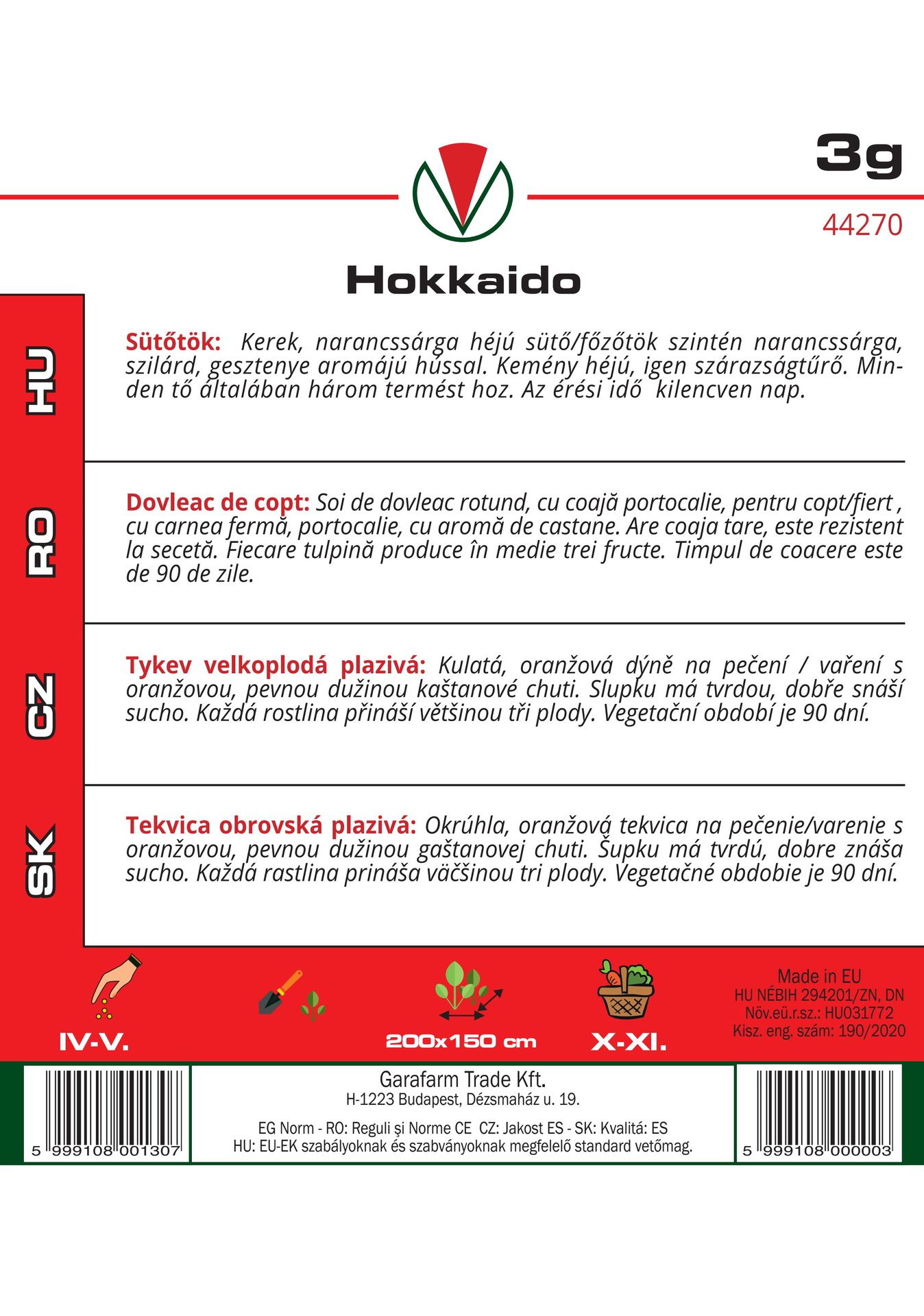Vegetačná doba je 90 dní, dorastajú do veľkosti 20 -25 cm a vážia 1 - 2 kg.